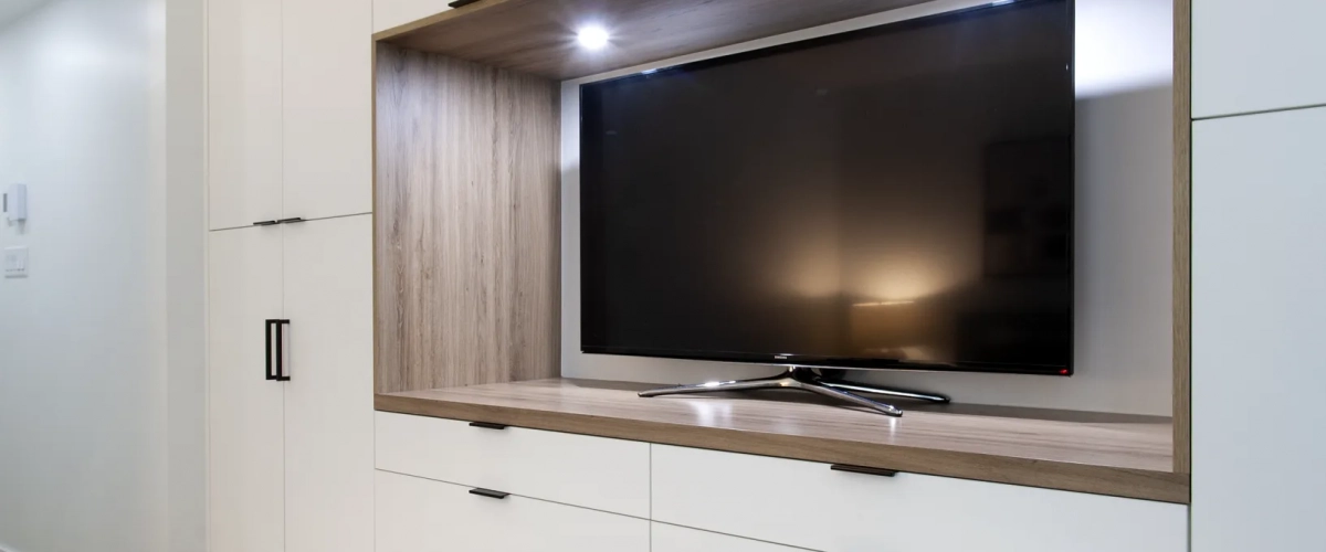 Sleek Bedroom Built-In Media Wall & Wardrobe